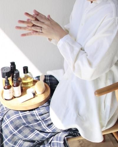ゆったりと織られた生地は柔らかであたたかみのある素材感で肌触りよく保温効果も高いのが特徴です。