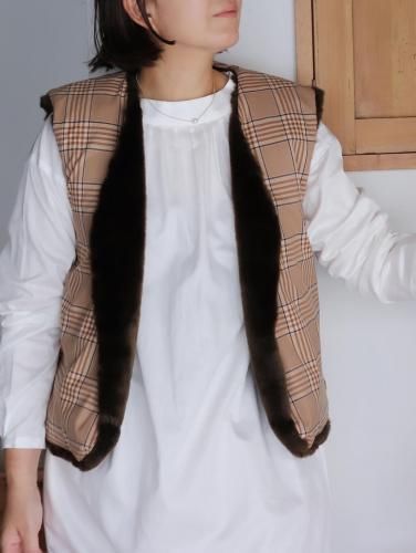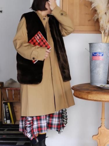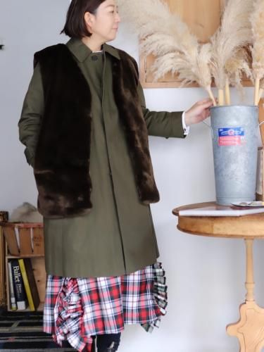 ロングにはネイビーのチェック柄を裏に合わせておりリバーシブルです